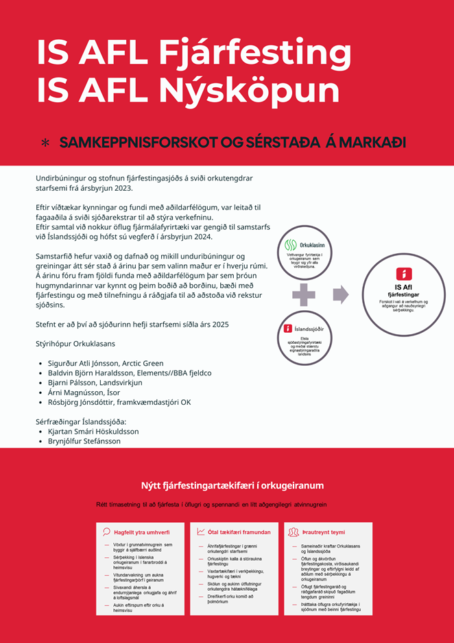 The fund will be named IS AFL Fjárfesting. and the innovation action will be called IS AFL Nýsköpun.