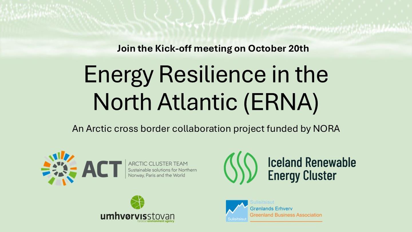 ERNA er þverþjóðlegt samstarfsverkefni Arctic Cluster Team (Noregur), Iceland Renewable Energy Cluster (Ísland), Greenland Business Association og Umhvørvisstovan (Færeyjar). Verkefnið er að hluta fjármagnað af NORA – Nordic Atlantic Cooperation og miðar að því að efla svæðisbundið samstarf, nýsköpun og viðnámsþrótt í orkukerfum á norðurslóðum og í eyjasamfélögum.